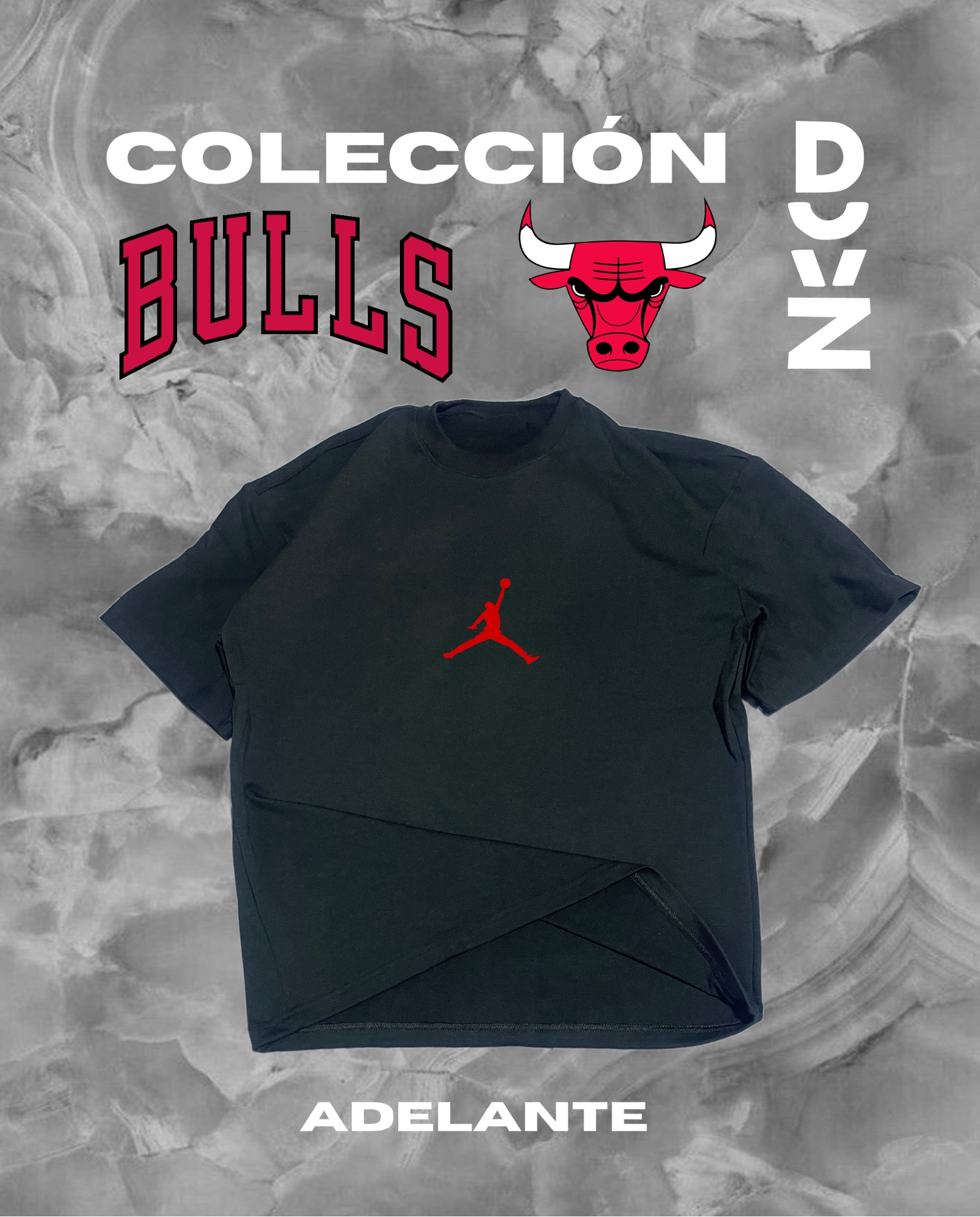 El diseño presenta a Michael Jordan en su icónica pose de vuelo, el logo «Jumpman» y el número 23 con los colores clásicos rojo y negro de los Chicago Bulls. El estampado, ya sea en serigrafía de alta densidad o DTF premium, captura la calidad y la fuerza del slam dunk perfecto. Su corte te da un look urbano y atemporal, ideal para la cancha o el día a día.