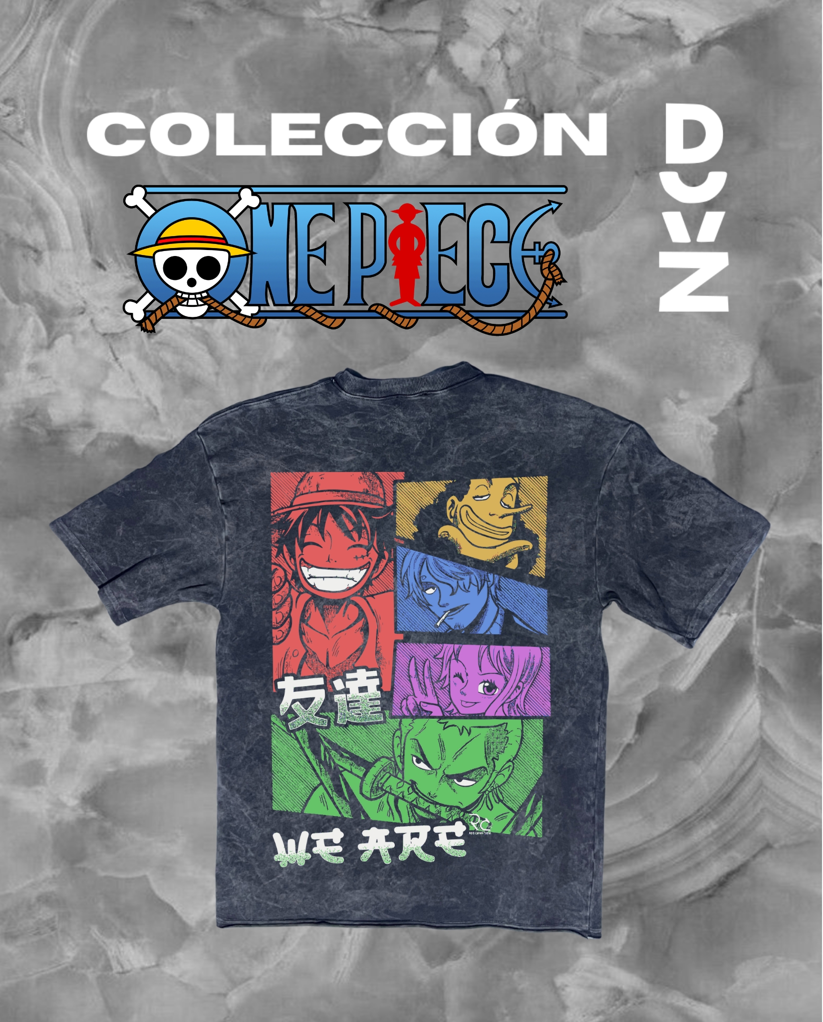 El artwork es una representación dinámica de los futuros Nakamas, con un enfoque en sus poses más icónicas. La estampación mediante DTF resalta cada detalle, desde el sombrero de Luffy hasta las tres espadas de Zoro. Su corte es cómodo y versátil, ideal para lucir tu pasión por el anime japonés y el shonen más grande de la historia.