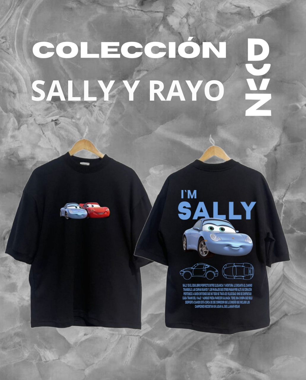 Aquí tú eres el diseñador. El estampado de Sally está impreso con tecnología DTF premium, garantizando colores vivos y resistentes. Lo mejor: puedes seleccionar el color de la camiseta y elegir el corte que mejor se adapte a tu flow sea Corte Estándar o Corte Oversize.